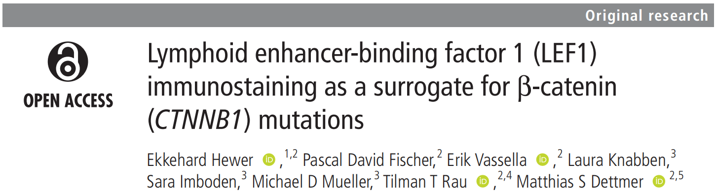 【文獻題目】Lymphoid enhancer--binding factor 1 (LEF1) immunostaining as a surrogate for β-catenin (CTNNB1) mutations.