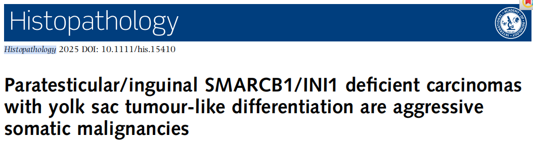 【文獻(xiàn)題目】Paratesticular/inguinal SMARCB1/INI1 deficient carcinomas with yolk sac tumour-like differentiation are aggressive somatic malignancies.