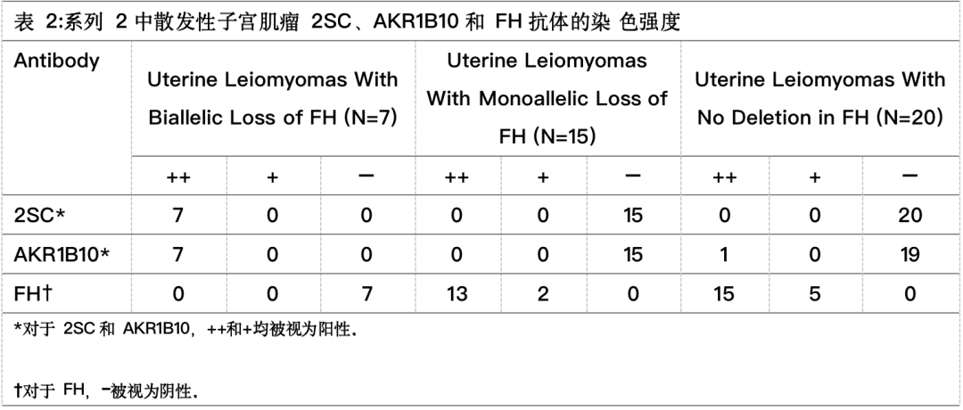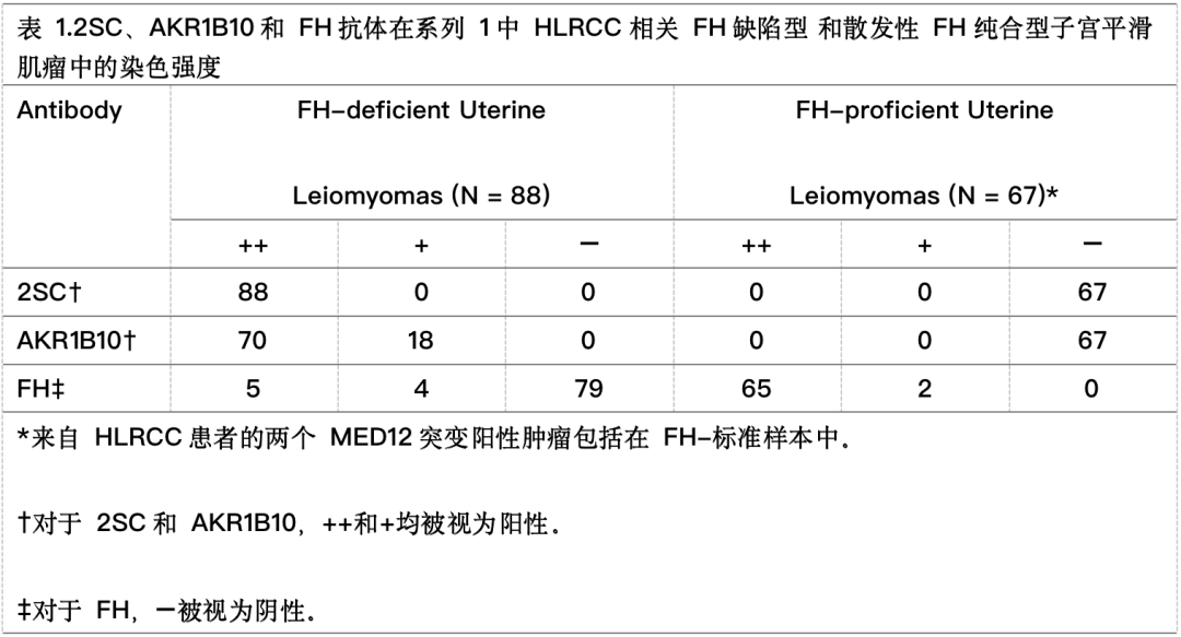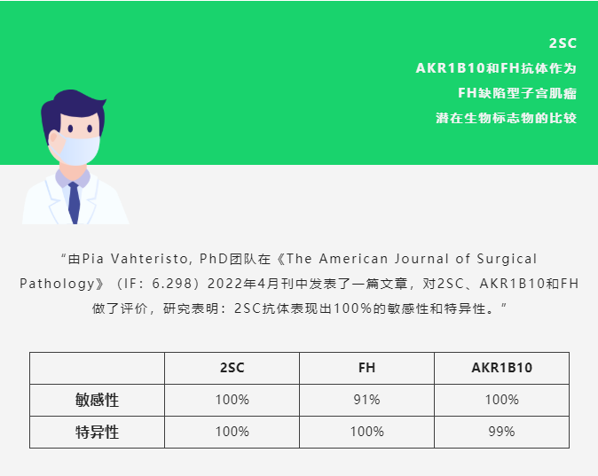因此,FH的雙等位基因失活導致蛋白質的異常琥珀化。經證明,檢測琥珀酸化蛋白的2SC抗體可以高靈敏度和高特異性地識別HLRCC 相關的子宮平滑肌瘤。