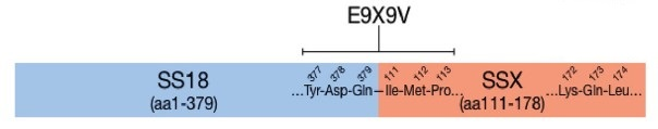 圖1. 融合特異性抗體SS18-SSX(克隆號E9X9V)靶向的SS18-SSX融合基因序列示意圖(引自參考文獻3)